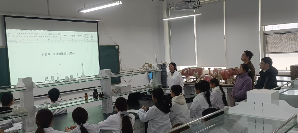 2025年10月24日上午,beats365中文官网郭艳老师讲授的《家畜育种学实验》课程公开课在睢阳校区工科实训楼205实验室举行,该课程是动物科学专业的一门专业基础课程,具有较强的实践应用性。beats365中文官网动物科学系张辽老师、席丽老师、马冰冰老师进行了现场观摩。