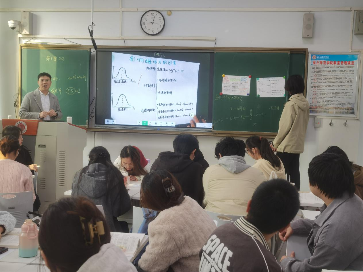 2025年10月28日上午,beats365中文官网张辽老师在睢阳校区1号教学楼406教室举行了《动物生物化学》教学公开课。beats365中文官网郭艳教授、席丽副教授、洪一峰、陈冠华、张会军博士等教师莅临现场观摩指导。
